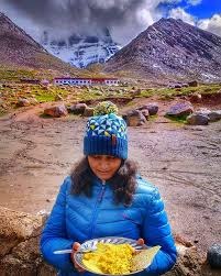 Meals are repetitive-boiled rice, vegetables, soup, tea-with limited availability. Altitude suppresses appetite and slows digestion. Hydration is critical. Pack: